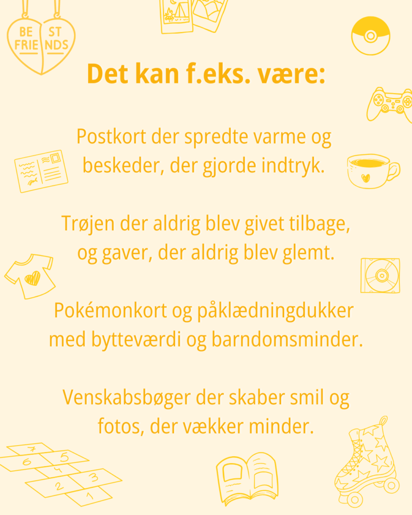Vi har alle noget liggende i en skuffe, på loftet eller i en gammel æske, som vækker minder om gamle venskaber. Det kan være et postkort fra en sommerferie, en trøje, der aldrig blev givet tilbage – eller måske noget legetøj, der engang var en del af et fællesskab i skolegården.