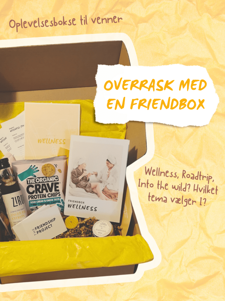 Eller hvad med en date-night-in-a-box til venner? Her på siden finder du forskellige oplevelsesbokse til venner, som indeholder både drikkevarer, snacks og forskellige aktiviteter i kan lave hjemme eller tage med i sommerhus.